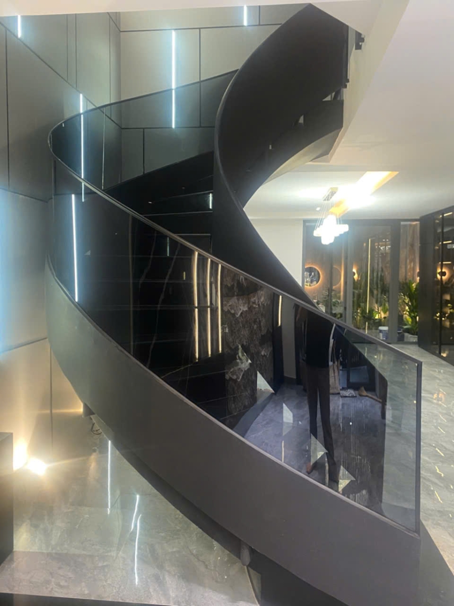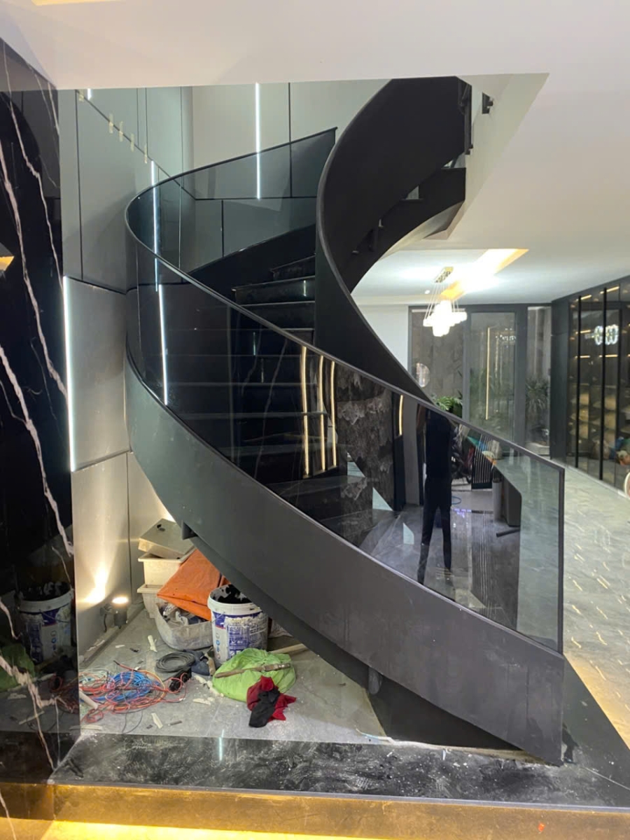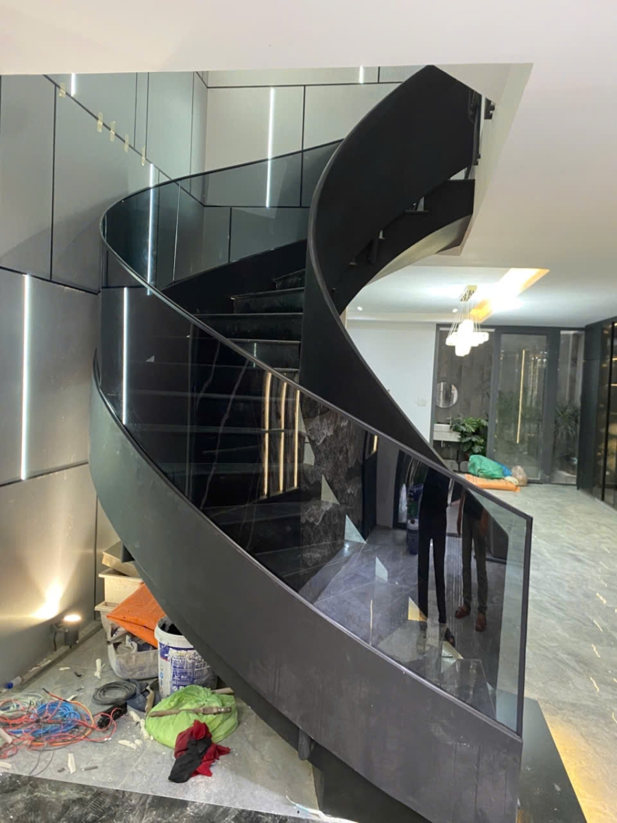 Trong xu hướng thiết kế kiến trúc hiện đại, cầu thang không chỉ đơn thuần là phương tiện di chuyển giữa các tầng mà còn trở thành tâm điểm nghệ thuật của toàn bộ không gian. Dự án cầu thang kính xoắn mà chúng tôi vừa hoàn thiện là minh chứng rõ nét cho sự kết hợp hoàn hảo giữa kỹ thuật thi công chính xác và tính thẩm mỹ đỉnh cao.